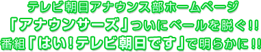 いつも「アナウンサーズ」をご覧頂き、ありがとうございます☆ ひとたびクリックすれば、アナウンス部のあんな事からこんな事までわかってしまうこのページ。 去年からは「激撮!隣のアナウンサー」(動画配信)も始まり、テレビだけではわからない普段の私達を知って頂けるようになりました。 “きっと誰かに作ってもらってるんでしょ!”と思っていたそこのアナタ! ざんねん!!(-_-)/~~~ 実は、各コーナーの担当アナウンサーが、企画・構成・取材・執筆まで全て行っているんですよ☆インターネット上ではありますが、手作り感タップリなのです。 例えば、只今アップ中の「激撮!隣のアナウンサー」はこんな感じ |