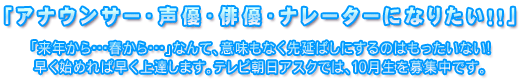 現役アナウンサー・一流の声優や演出家らが直接指導するテレビ朝日アスクで、