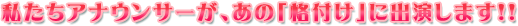先日、「ロンドンハーツ 3時間SP」の収録に参加してきました。 しかも収録したのは、あの「格付け」のコーナー!! 普段よく拝見しているコーナーですが、 まさか自分が出ることになるとは、夢にも思っていませんでした。 あの格付けの席に座ってトークバトルをするなんて、出来るだろうか…と、 かなり不安なまま収録を迎えました。 出演するのは、 青木さやかさん、有賀さつきさん、橋本志穂さん、古瀬絵理さん、山本モナさんという フリーアナウンサーの皆さんや元アナウンサーの皆さんと、 丸川珠代アナ、下平さやかアナ、大木優紀アナ、前田有紀アナ、そして私、堂真理子の テレビ朝日アナウンサーの計10名。 そして、格付けのテーマとなったのが、「根本的に男性を分かっていない女子アナ」!! 初めての女子アナ格付けの収録で、 最初は皆さん緊張している様子でスタジオはとても静かでした…。もちろん私もド緊張です。 淳さんも、「何だか普段とは違う雰囲気だなぁ」とおっしゃっていました!! でも時間が経つにつれて本音の恋愛トークがどんどん出てきて、 とっても面白くて楽しい収録でした。 果たして男性を分かっていない女子アナのランキングはどのようなものになるでしょうか…?? 放送をご覧になってのお楽しみです♪ ちなみに、出演者全員着物を着ての登場です。 皆さんの美しい着物姿も注目ですよ☆ |