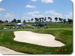 そんな中で、我らが解説陣も昨夜ピッツバーグに到着。 青木さんはチャンピオンズツアーの試合を終えてアイオワ州から現地入り、 戸張さんは日本の女子トーナメントを終えて成田から、 そして羽川さんもワシントン経由で一足早く、と、 皆さんハードなスケジュールをものともせず、 さっそく今朝からオークモントの難コースをチェックして歩きました。 |