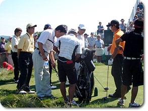 現地火曜日は、いよいよギャラリーも増えて選手も真剣チェックモード。 本番さながらの(?)暑さも手伝って、今日のオークモントは熱気に包まれた一日になりました。 |