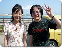 西表島出身の池田さん。 島の人口はおよそ45人。 中学を卒業して島を出るまでは同級生というものがいなかったとか。 池田さんにとって唄は、生まれたときからずっと側にあったもの。 「島への想い」をテーマに繊細な声を響かせます。 インタビューは浜辺で行われました。 水平線を見つめながら(そのときはちょうど曇っていた空を見上げて) 「晴れていたらもっときれいなんだけどねぇ」と呟いた池田さんの目に映る海は、 那覇の海ではなく、遠く離れた西表島のふるさとの海だったのかもしれないなぁ…、 とこれを書いている今思いました。 私の生まれ育った町は海はありませんでした。(多摩川はありましたけどネ) 海という言葉を聞いて、イメージする海はやっぱり…神奈川県の誇る湘南の海。 人によって思い浮かべる海は違いますが、 それぞれの人がそれぞれの浜辺に、 そしてその水平線にいろいろな思いを持っているんでしょうね。 西表島の海はどんな景色なんでしょうか? 池田さんのふるさと、西表島はどんなところなんでしょうか? 観光で二、三日行くだけでは決して理解出来ない深い思いが歌から伝わってきます。 さてもう一人が、こちら。 |