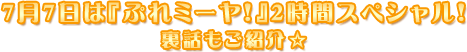 本番を待つ出演者の皆さんですが、 よーくみると、真鍋さんの動きが怪しい!? 実はこれ、”腹筋”を鍛えているのです。 真鍋さんは普段運動する機会がないということで、 ちょっとした時間を有効活用されていました。 隣の私も、つられてお腹を気にしています・・・。 以上収録の合間のご紹介でした。 「ぷれミーヤ!」超豪華2時間スペシャル!! 2007年7月7日(土) 14:35〜16:25 【M C】 勝俣州和、眞鍋かをり 【宣伝マン】 次長課長、タカアンドトシ、博多華丸大吉、スピードワゴン、波田陽区 ぜひご覧ください♪ |