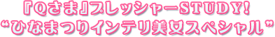 3月3日(月)は、ひな祭りの日! そして、3月3日(月)は『Qさま』の日です! ということで、今回の『Qさま』プレッシャーSTUDY!は、 “ひなまつりインテリ美女スペシャル”☆ 挑戦者は女性だけです。 今回は、語学力に自信あり!とてもキュートなアイドル・安田美沙子さん、 英語の話せる美女、と言えばこの方!西田ひかるさんが初参戦。 その他の解答者の皆さんも超豪華。 山口もえさん、青田典子さん、西川史子さん、麻木久仁子さん、宮崎美子さんです。 テレビ朝日アナウンス部からは、 大木優紀アナと私、島本真衣が挑戦します。 |
