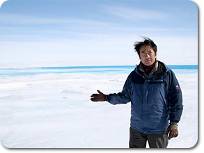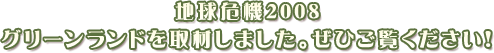“極北の地、グリーンランドで氷が溶け出している。しかも、10年前の2倍ものスピードで…” 日本でも夏に40度を超す日が続くなど、これまで日常の生活でも、温暖化の影響を肌で感じてはいました。 しかし、それがここまで自然の地形を大きく変え、人々の生活まで一変させようとしているとは、全く想像がつきませんでした。 グリーンランドには、6月前半の約2週間滞在しました。 私の頭の中では、かつて冒険家の植村直己さんが縦断に成功した、あの極寒の氷の世界のイメージでした。 ところが、到着してまずその暖かさに驚きました。 天気がよければシャツ1枚、上着なしでも丁度良い位です。 実際街にはTシャツ1枚で歩く地元の人も…。 そして、ヘリコプターで向かった氷の台地。 標高800メートルの氷は、まだ夏の初めだと言うのに、シャーベット状になり溶け出していました。白銀の世界には、氷が解けてできた真っ青な巨大な湖や幾重もの激流が走っていました。 今回の取材は、驚きと発見に満ちたものとなりました。 グリーンランドはまさに、地球温暖化の最前線です。 ぜひ、地球危機2008でその実態を確認してください! |
