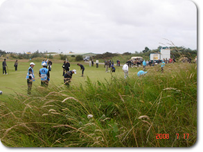 どうか、明日からの本番は少しでも風が弱まりますように…。 あ!!!最後に一つ。 ゴルフをされる方なら、これで風がいかに強いか分かるはずです。 今田選手は、こんなに低くティーアップして、練習ラウンドしてました。 みえるといいですけど。 |