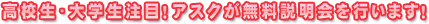 参加費は無料ですので、高校生の方もお気軽にご参加ください!