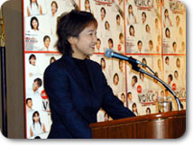 普段アナウンス部で顔を合わせ慣れてしまっている私も、思わず見とれてしまうほど、本当に華やかでした。 「 voice 2 」 のチーフを務める川瀬アナの歯切れの良い挨拶でスタートした今年の記者発表。 まず、堀越部長が「アナウンス部員みんなが、ひとつ板の上で一丸となって言葉に集中します。この公演には私たちの夢、心がぎゅっと詰まっています。」と、しっとりと品のよい中にも、力強い挨拶をしました。