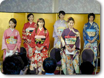 今年の記者発表の目玉は、日本一美しい部長と言われている(?)堀越部長以下、10人の女子アナが、新春のアナウンス部からのご挨拶というコンセプトのもと、全員振袖姿で、記者発表に望んだことです。