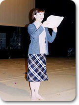 ■松尾由美子アナの感想■舞台に立つと、観客席の近さに圧倒されてしまいました。 お客さんが入っていないにも関わらず、 まるで観客席が迫ってくるようなのです。 まして当日は、上下左右からたくさんの目が一気にこちらに集中するのかと思うと、 正直言って、恐い・・。 どこを見ればいいのか、蛇に睨まれた蛙ではないですけれど、固まって声が出なくなってしまいそうでした。 逃げも隠れもできない場所。 今は恐いという気持ちが先行してしまうけれど、 少しでも人の心に響くようになるまで、これから精一杯、修行を積みます。 |
