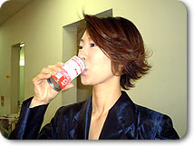 千穂さんは、会見前に腰に手を当てながらジュースを一気飲みしていました。なんだかフィギュアらしい、いや男らしい?!