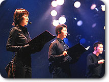 「voice3」の公演が終わって、2週間が経とうとしています。 始まるまでは、う〜ん、うーん。と唸ってばかりで、あぁ…時間がない!と焦っていましたが、終わってしまうと、これまた早いものですねぇ。。。 というのは、出演者の気持ちではありますが(笑)、 見に来ていただいた皆さんの胸には、しっかり(片隅にでも!)引っかかっていると信じております!! 舞台は、出演者とお客様が向き合う場。私たちの「熱い息」を感じてくださった方々は二日間4公演で2000人。 すごい人数!ではありますが、テレビ朝日のアナウンサーの舞台ですもの。 テレビを使わない手はない!ということで、 舞台終了後2週間にして、放送決定です!!ぱちぱち。 |