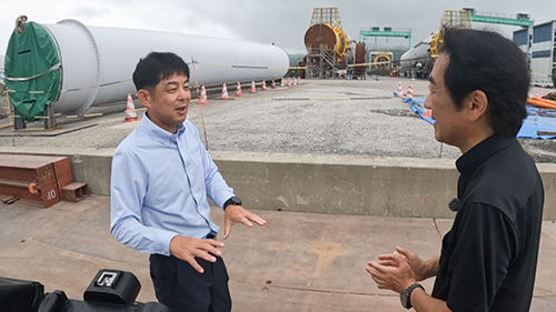 さらに、北九州市は、風車の部品製造やメンテナンスなど、洋上風力に必要とされる、あらゆる物やサービスを提供する、日本初の洋上風力総合拠点を目指しています。陣頭指揮をとる市の職員は、巨大な風車の基礎部分を製造する工場や、風車の心臓部の歯車製造企業など様々なステークホルダーの誘致を進めてきました。