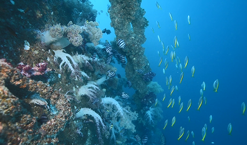 風車の水中部分が魚の楽園に!(提供:渋谷潜水工業)