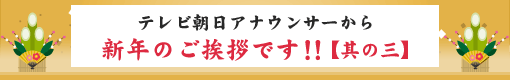 皆様どんなお正月をお過ごしでしょうか。 私は、大晦日に局に入り、「朝まで生テレビ新春スペシャル」を放送し、 元旦に帰宅、気持ちも新たに新しい年を迎えました。 実は、一月一日をテレビ朝日で迎える生活をもう二六年も続けています。 今年はどんな年になるのでしょう。 この国に生きる私たちが元気に暮らすことができるよう 夕方の「スーパーJチャンネル」で「元気」をお届けしようと心に誓っています。 どうぞ今年も応援してください。宜しくお願いいたします。 「スーパーJチャンネル」キャスター 渡辺宜嗣 ![]() 市川寛子アナ