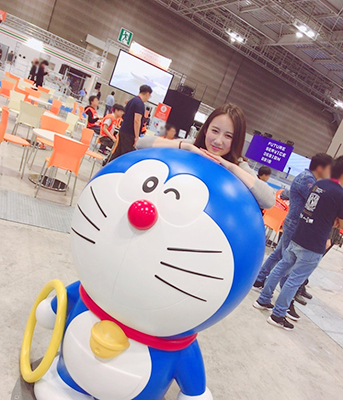 取材先で出会ったドラえもんと。
