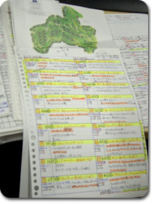 「難易度」という言葉は、ゴルフ中継ではよく使われます。 「難易度が高い」とは「難しい」という意味です。 「難易度」が使われる時は、必ずといっていいほど「難しさ」を基準に表現するときです。 「全英リコー女子オープンゴルフ」の準備をしていた進藤アナに聞きました。 |