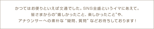 また、掲載するメッセージにのみお返事することを、あらかじめご了承ください。