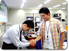 「後日、小松くんに遭遇。感謝の握手です。」 |