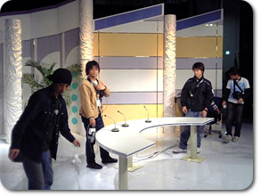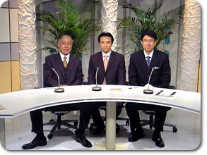 役どころは、ニュースキャスターみたいなものなんでしょうか?台本上は「司会者」となっていました。要するに、テーブルの真ん中に座って、道路公団幹部とおぼしき人に質問したり、コメンテーターとのやりとりをする役なわけです。 |