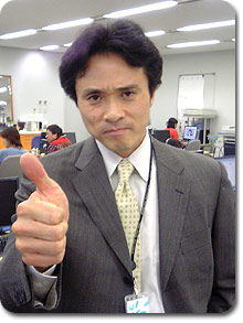 アナウンス部に戻って、ひと安心。自信満々。 |