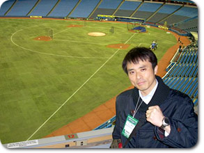 人工芝のドーム球場、しかも回りは日本人記者ばかり、10年以上前にスポーツの現場で一緒に仕事をした他社の知り合いも多く、気分はほとんど東京ドームでした。