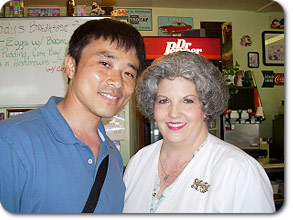 お会計の時に、看板お母様と1枚。ありがとうございました。 |