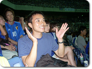 満員のお客さんが日本代表に声援を送りました。