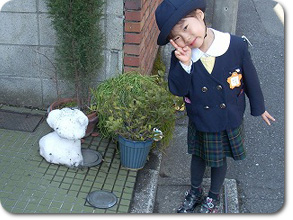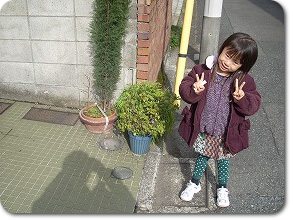 幼稚園から帰ってきた娘(年中)と記念撮影。