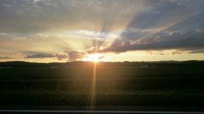 最終便に間に合うよう空港に急ぐ車中ですが、旅情をそそられます。