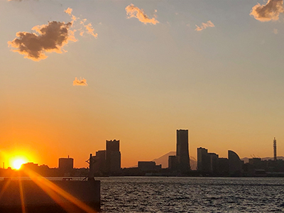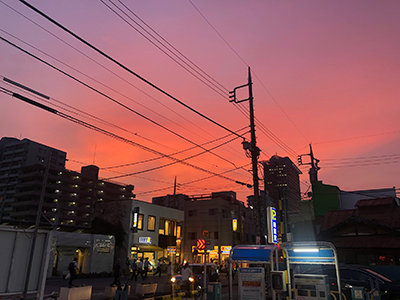 ロケの合間にきれいな夕日が見られた時は写真を撮ってしまいます。