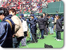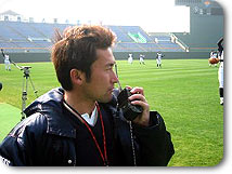 自分はサンマリンで取材をしつつ本球場やB球場、ドームやブルペンを張っている横井記者やカメラマンと常にトランシーバーで連絡して一日中選手の移動に気を配っています。 それにしてもサンマリンスタジアムは最高の球場なんですよ。芝なんて今話題のタンパ(NYヤンキースのキャンプ地)なんて目じゃないぐらいの美しさ!