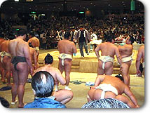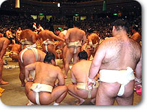 | 十両力士も大きいですが、平均で150キロ以上の幕の内力士はまじかで見ると山の様。 |