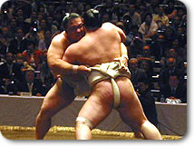 先場所は終盤の黒星をものともせず千秋楽で横綱朝青龍を突ききって三度目の優勝を手にした千代大海。4/23日の番付発表の際にも「過去2回の優勝とは違うプレッシャーのなかで勝てたのは大きな自信になった」と話していました。後半調子を上げてきた横綱に対し真っ向から押し出した相撲でのカド番優勝は確かに圧巻。それでも12勝という勝ち星に北の湖理事長が「印象としては弱い」と話し今場所内容と星が伴っての連続優勝が条件であることも事実。それゆえ、千代大海も「横綱を圧倒して好印象を与えたい」と目論んでいました。
