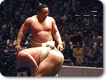 先場所に続き武蔵丸の休場で今場所も一人横綱の重責を担う |