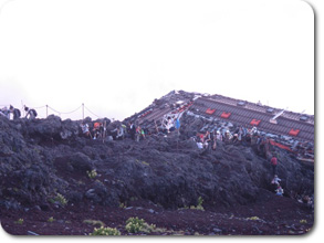 河口湖口ルートで5合目から登り、日の明るいうちに本8合目の山小屋に到着。