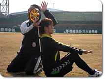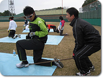 先頭を引っ張る城島選手の気合溢れる走りに感化されて、 もちろん私も全力を尽くします! 一本目はゴールのパイロンにうまくタッチできず、 大幅にタイムロスしましたが、二本目・三本目は中西選手に次いで2位!