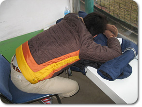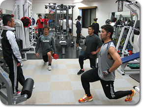 ダッシュ力だけでなく、心肺機能が問われるこのメニュー! 私も必死に食らいつき、三本計って平均タイムは2位と大健闘! 思った以上に最後の階段がきつく、足もとはふらふら。 (選手が走っている写真を撮る余裕無し…) さらに酸欠で少し頭も痛くなる状況でしたが、 これだけでは終わりませんでした。