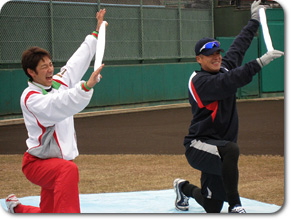 そう、シアトルマリナーズから5年ぶりに日本球界に復帰した 阪神・城島健司選手の自主トレに参加させてもらったのです。