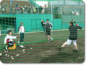あくまで1年間戦い抜くための土台作りが目的ですので、 この時点で城島選手自身が振り込むことはほとんどありませんが、 これからの球界を担う若手選手には、これまで培ってきたバッティング理論を 惜しみなく伝えます。