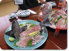 この日の昼食は三度のメシより釣りが好き!の城島選手が 五島列島で釣り上げてきた鮮度抜群のクロ(メジナ)と鯛。