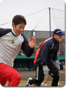 この自主トレには城島選手の『野球に取り組む姿勢』を学ぼうと チームや球技の垣根をも越え、多くの若手が志願します。