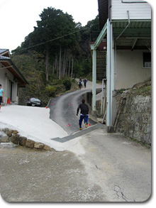 神社の裏手にはさらに別の坂道が… これも同じように三本走ります。
