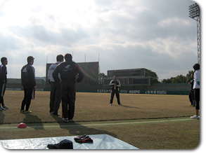 実質わずか3日間という短い期間でしたが、球場での取材ではなく 同じグラウンドで練習をしてみての実感は… @プロの華のあるプレーは、やはり日頃の地道な努力の賜物であること A常に実戦を想定・イメージすることを徹底していること そして Bスキルアップはもちろん、『怪我防止』が非常に重要であること です。
