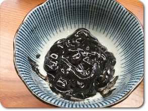 出てきたこれが黒造り。イカ墨が入ったイカの塩辛ですが、独特の墨の風味が加わって
