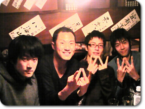 右から、朝日、たけちゃん、僕、中沢。撮影者はあつし。 |