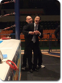 関節技体験収録は、フェイスロックから開始。 |