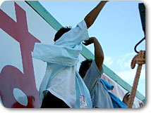 「サンサンリポート」というこのコーナーは、試合前に応援団等に取材をして、これは!と思うネタを紹介するものです。