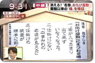 数日後、とあるスポーツ新聞の記事にお化け屋敷の取材後記が出ていました。 それによると、記者さんがデジタルカメラで写真を撮ろうとしたところ、 なぜか充電していたはずの電池が切れてしまったそうな…。