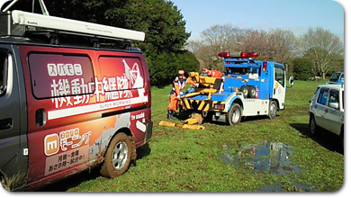 ウインチを使って見事救い出してくれましたが、 中継まではすでに1時間を切っているという ギリギリの状況。